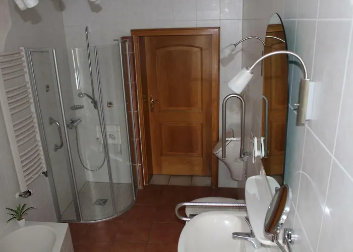 The Gefell property boasts a patio and a seating area and provides guests with a television and Wi-Fi. The interior elements include a sofa set, as well as a fireplace. Featuring a walk-in shower, a separate toilet, and a bath, the bathroom also comes with a dryer and towels.