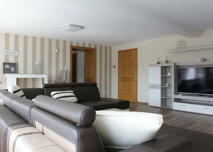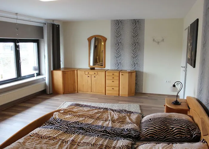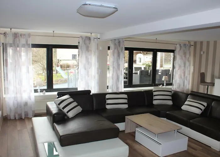 A fully-fitted kitchen, along with an outdoor dining area and a place for dining, are available for dining. Guests can also make use of an electric kettle, a refrigerator, and an oven to prepare their own meal. Hahn airport is reachable within a 59-minute drive from the accommodation. Highlights at this 1-bathroom villa include a sun terrace and a picnic area, as well as hiking, horseback riding, and fishing for sport lovers.